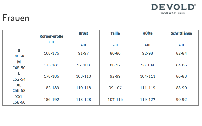Hier findest Du eine Übersicht der Bekleidungs-Größentabellen der unterschiedlichen Hersteller: